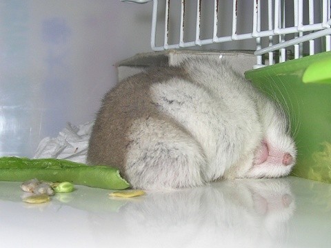 四月八日晚上十點半,母上為了替皮皮擦藥,把牠從鼠籠裡抓出來。皮皮緊閉雙眼,在她手中衰弱地抽動了一下,看來似乎病得很嚴重。
